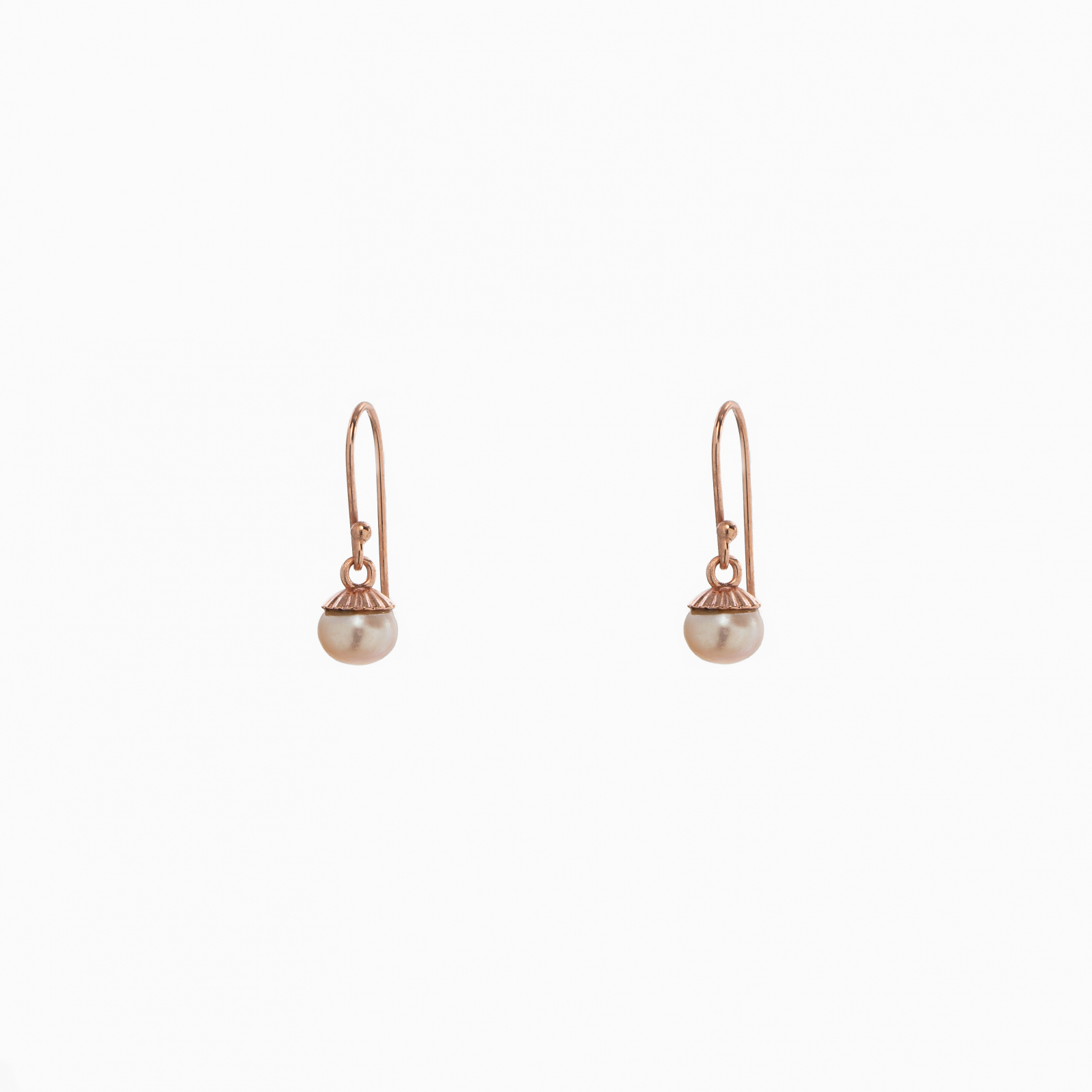 Cercei argint placat aur galben si perla de cultura roz de 7 mm