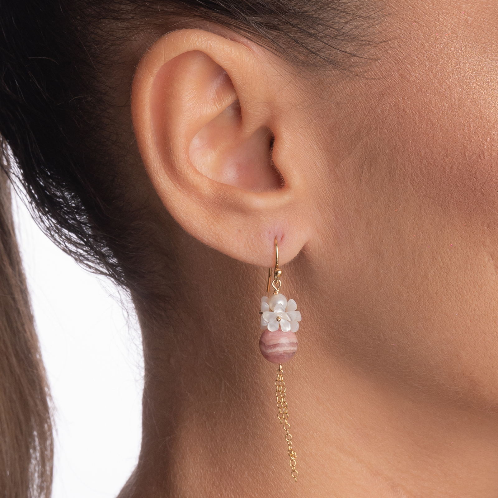Coletul dv. va cuprinde pe langa produsul Cercei Gold filled 1/20 14K perla de cultura 5 mm pietre semipretioase rodocrozit 9 mm flori din sidef lungime 5 cm urmatoarele: