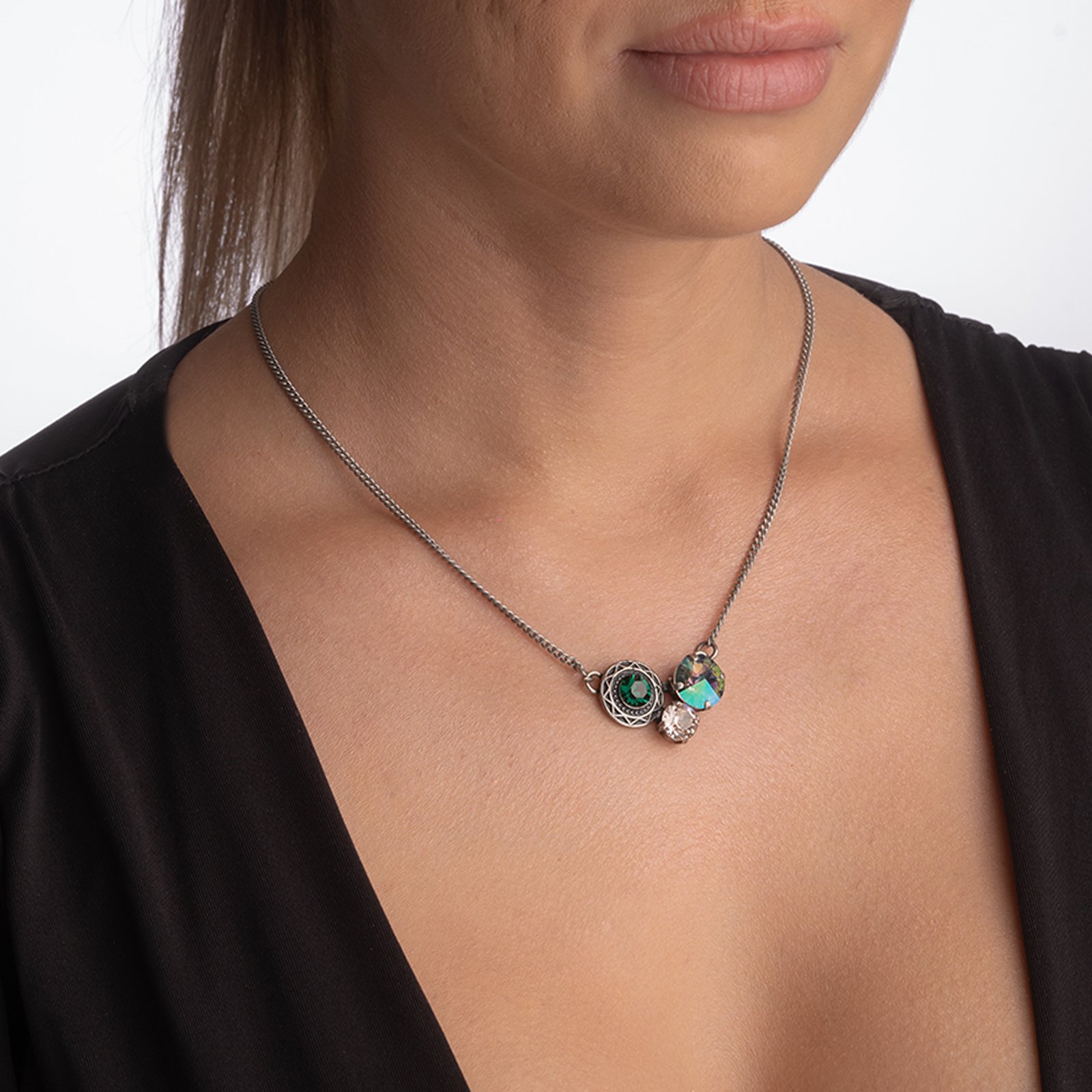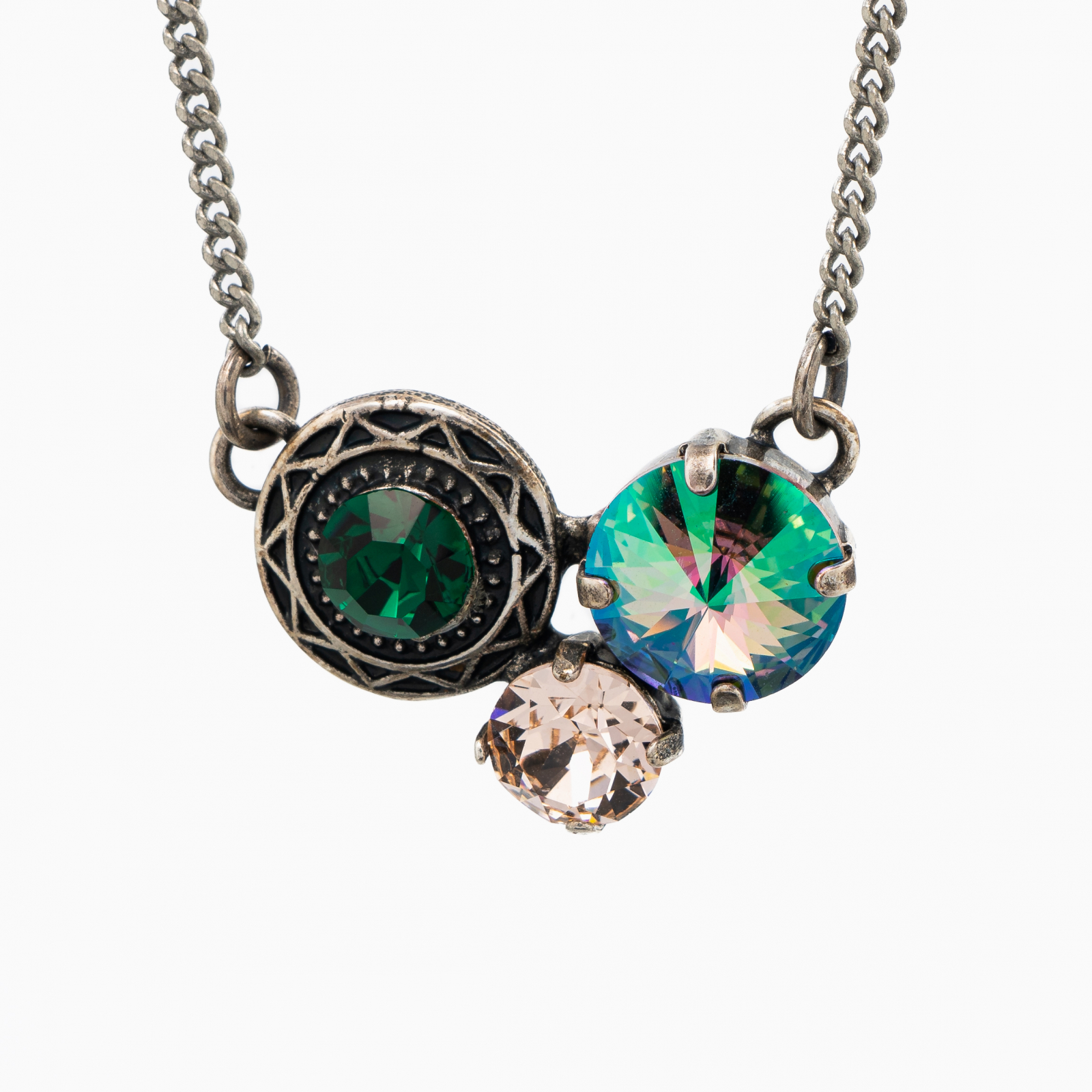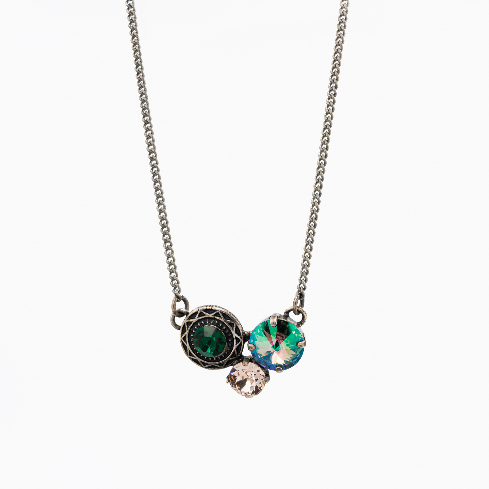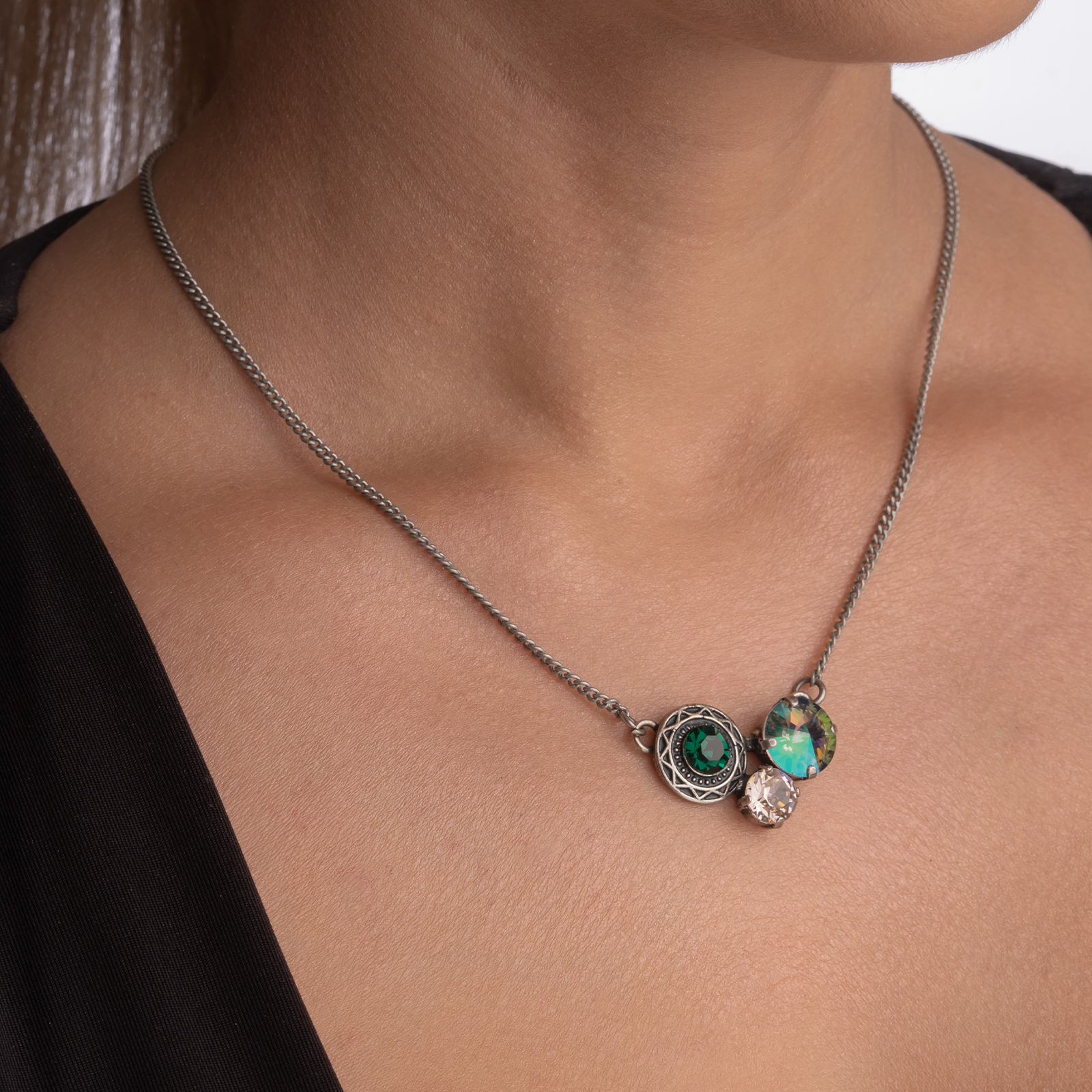 Coletul dv. va cuprinde pe langa produsul Colier cristale Austria mix culori predominant verde elemente metalice placate cu argint antichizat urmatoarele: