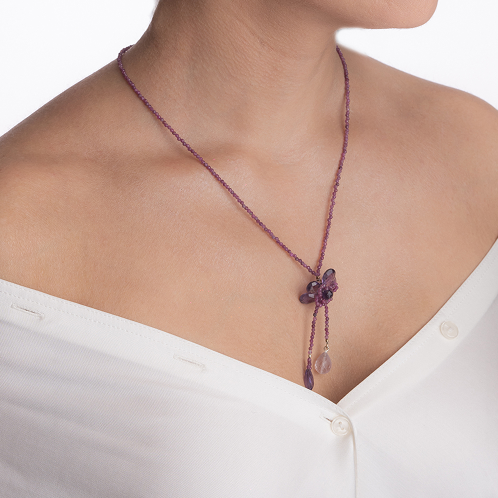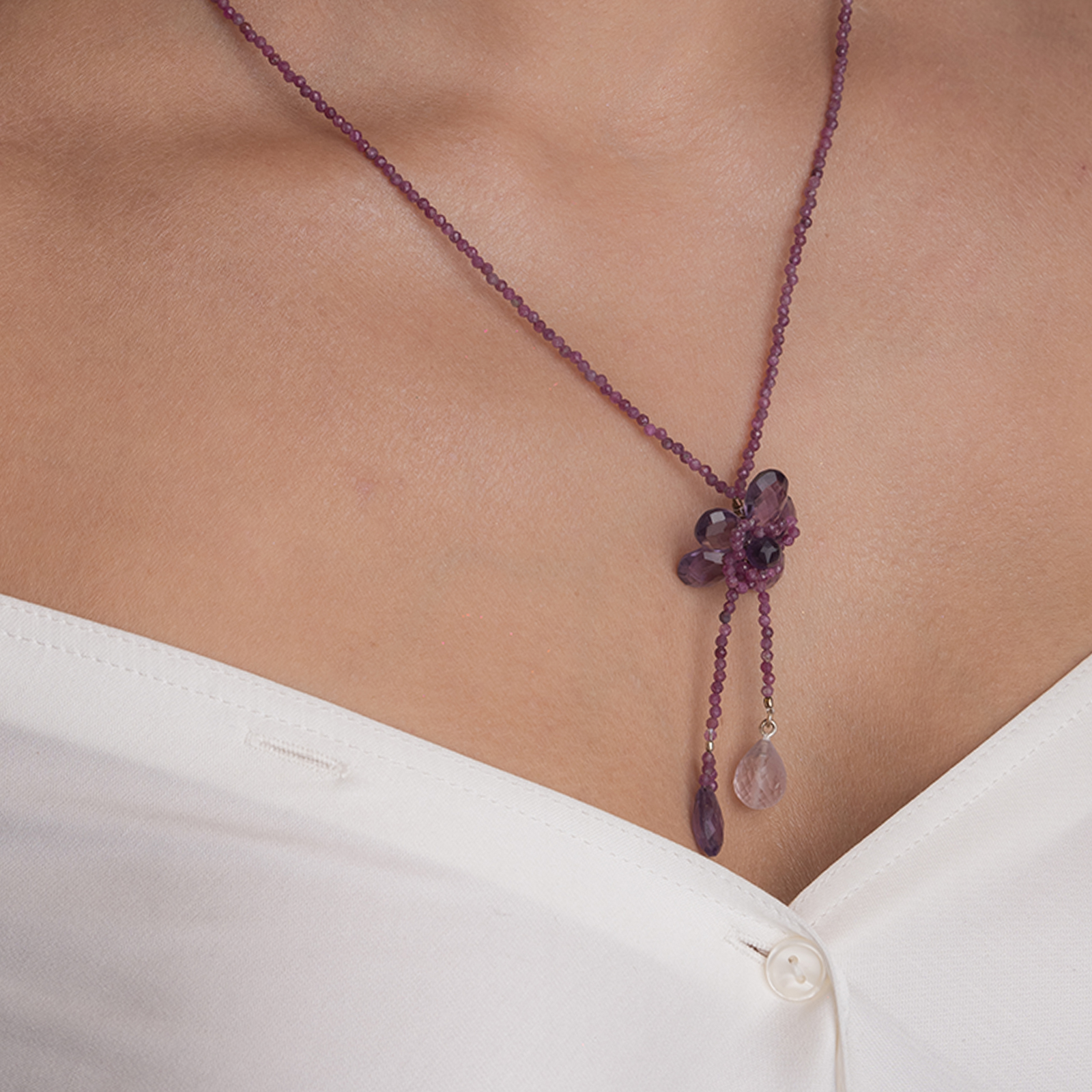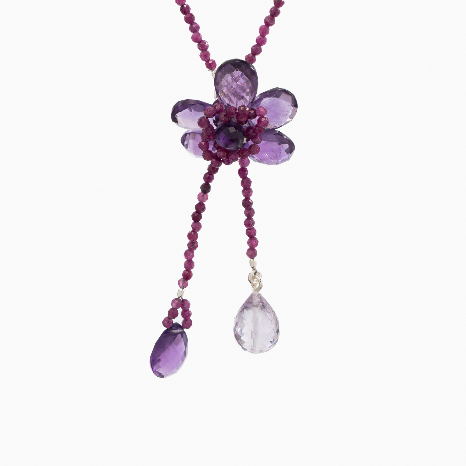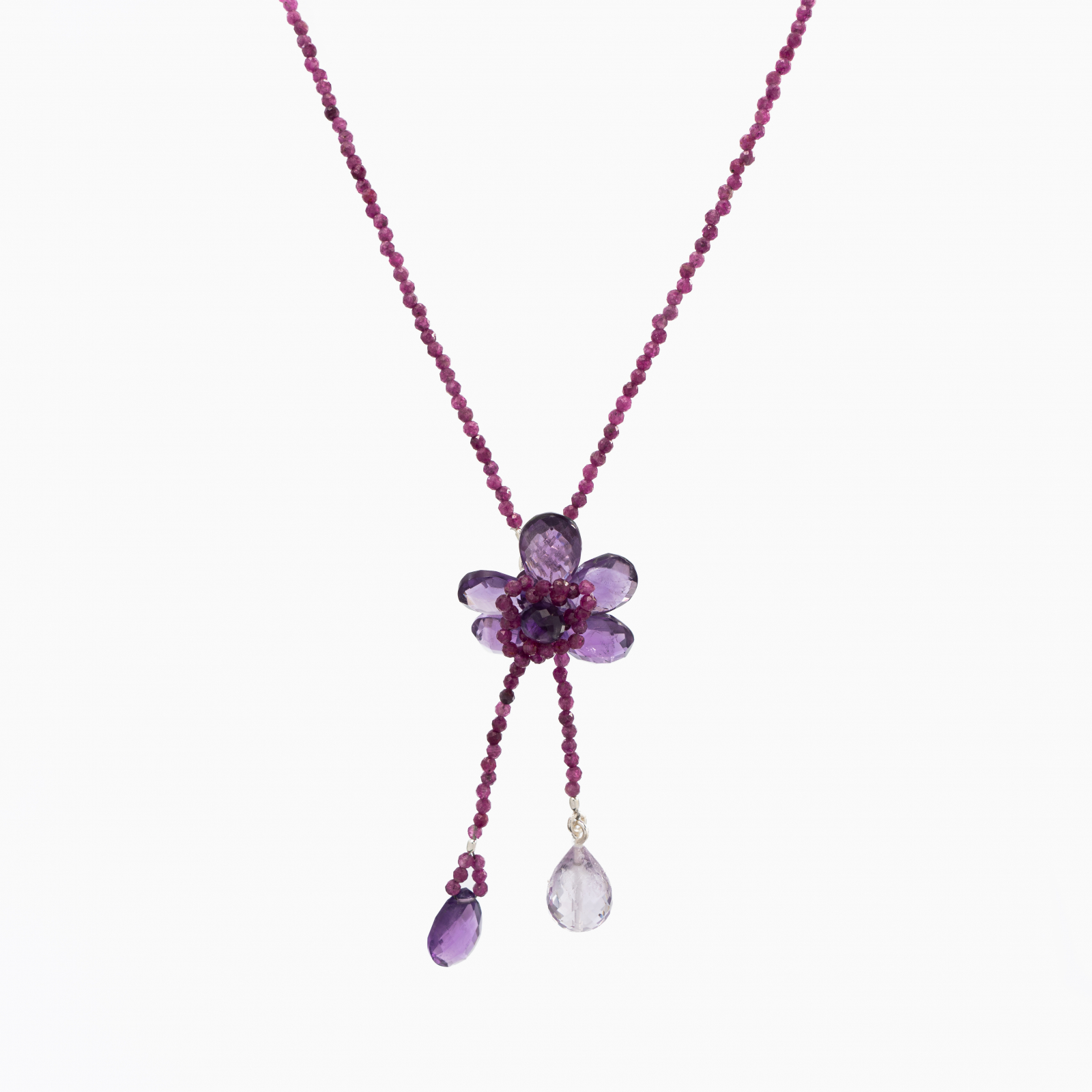 Coletul dv. va cuprinde pe langa produsul Colier argint pietre semipretioase rubin microfatetat 2,5 mm floare din briolete ametist lungime 49 cm urmatoarele: