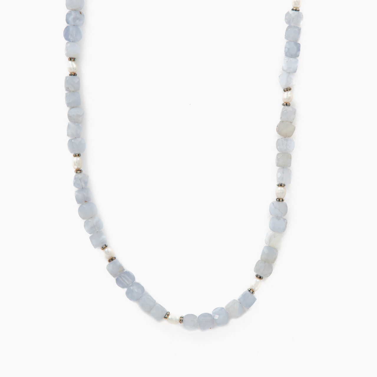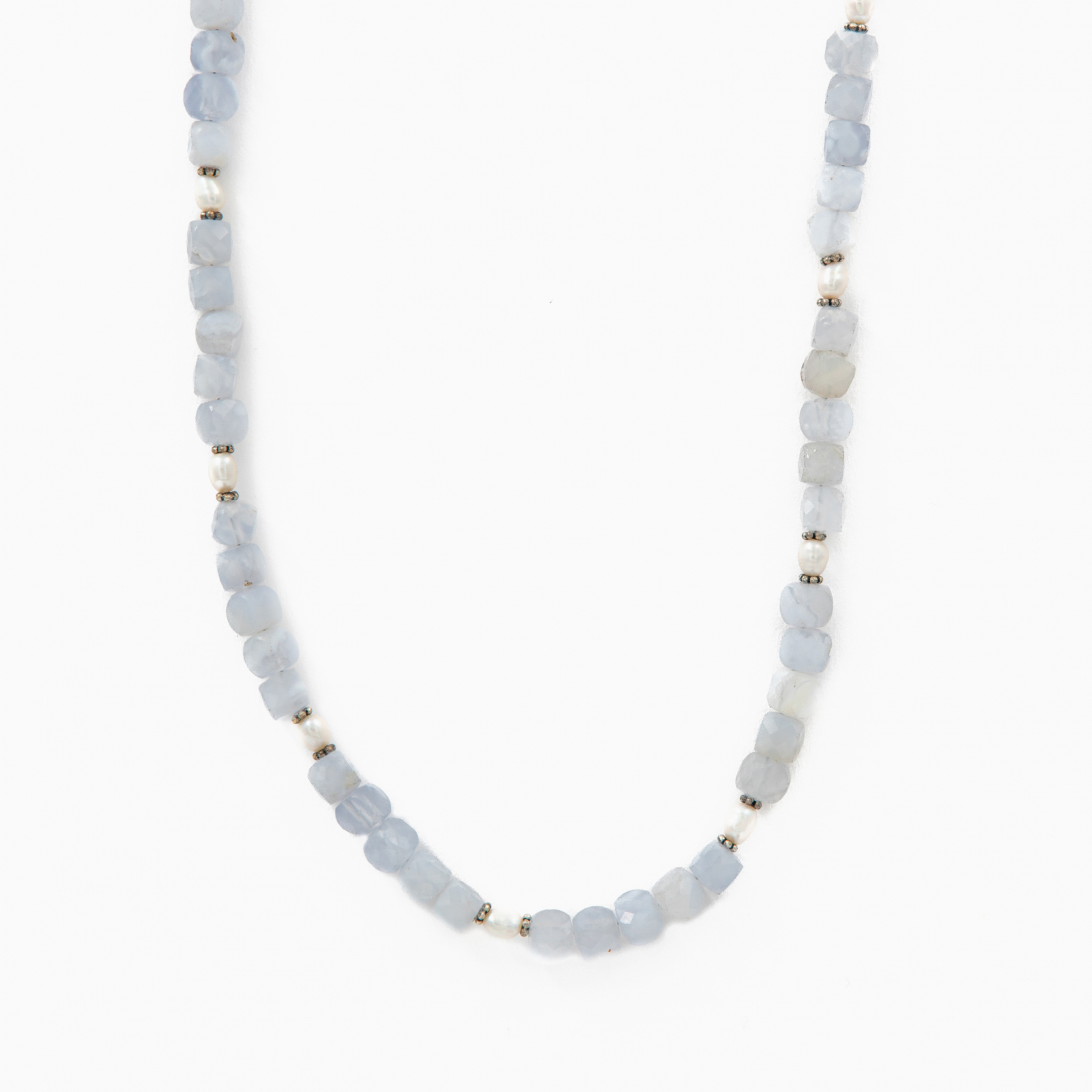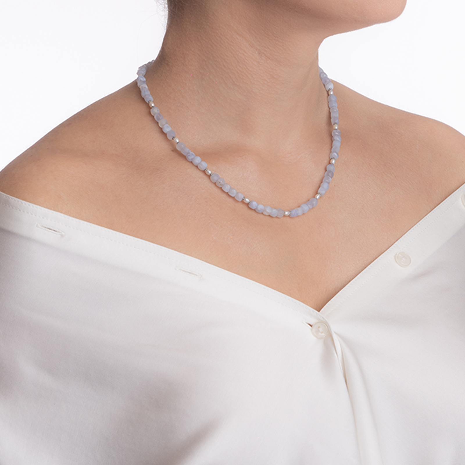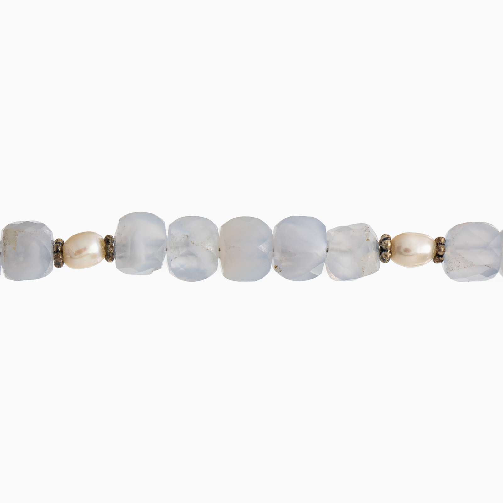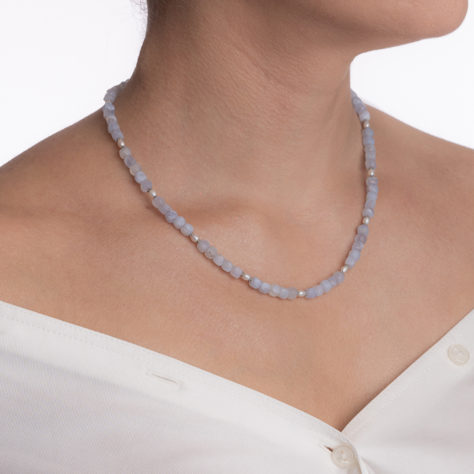 Coletul dv. va cuprinde pe langa produsul Colier argint pietre semipretioase calcedonie cuburi de 5 mm si perle de cultura cu accente din argint antichizat lungime 42 cm urmatoarele: